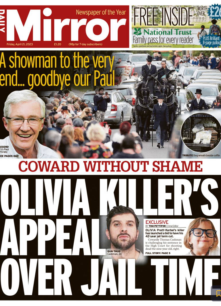 Coverage of The Tear Drop in the UK National Daily Mirror newspaper