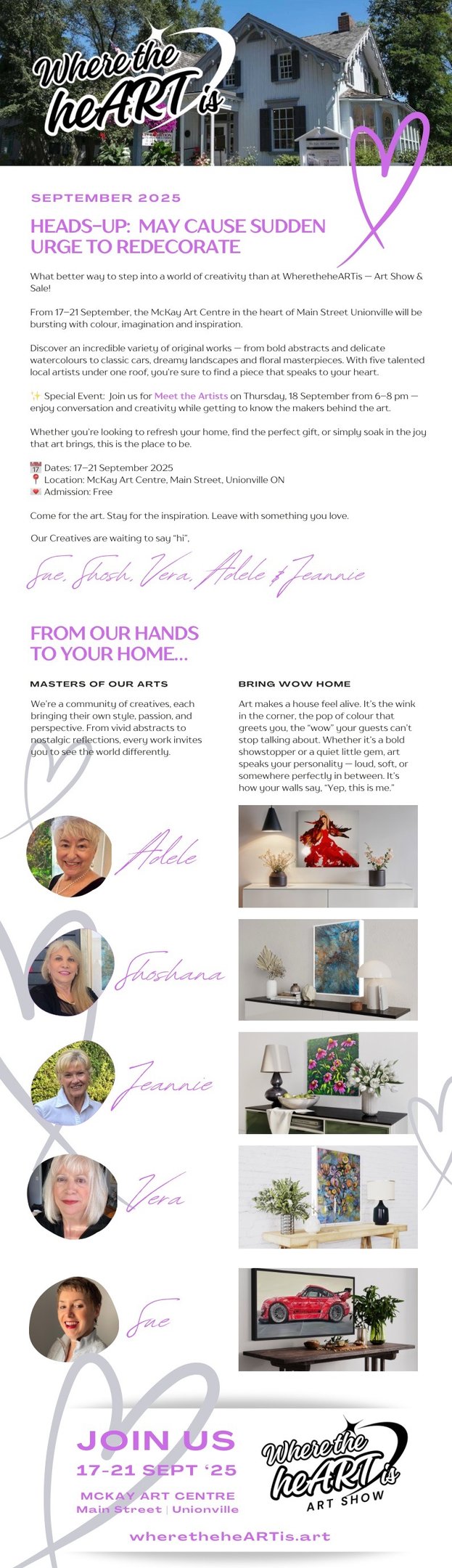 From 17–21 September, we hosted a delightful art show and sale at McKay Arts Centre Unionville that became a true feast for the eyes and the soul. The event showcased an incredible array of local talent and creativity: